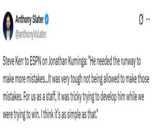“我覺得對所有人來說,這都是一個艱難的處境,”科爾說道,“他剛來時技術非常粗糙,而我們當時仍在全力沖擊總冠軍。他需要足夠的空間去犯錯,需要在 NBA 賽場積累經驗,去真正理解這個聯盟的內涵。對他而言,不被允許犯錯的滋味很難熬;對我們教練組來說,一邊要爭冠,一邊還要培養他,這也很棘手。事情就是這么簡單。”