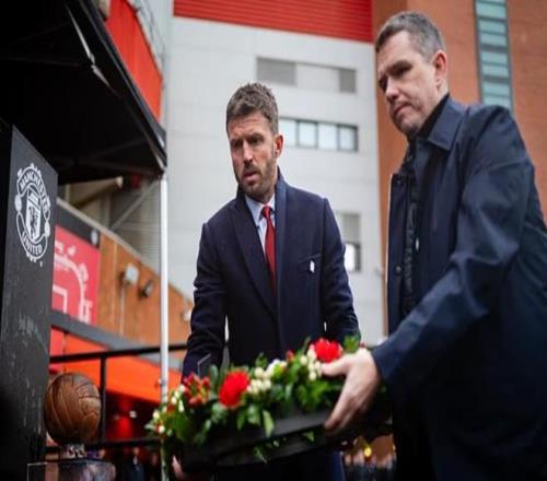 主教練邁克爾-卡里克與女足主帥馬克-斯金納,在慕尼黑時鐘下擺上花圈,隨后隊長布魯諾-費爾南德斯與瑪雅-勒-蒂西耶也依次獻花,全場肅立默哀。