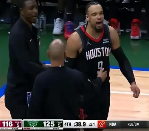 對陣雄鹿的比賽中,狄龍因為不滿裁判判罰與其理論時,火箭主帥烏度卡沖入場內為狄龍維權。