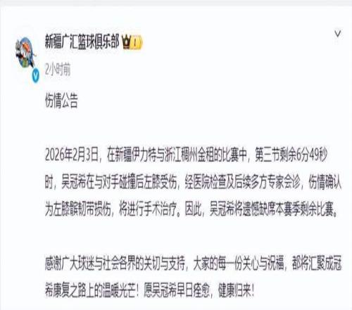 隨著吳冠希的賽季報銷,再加上新疆男籃沒有外援調整措施,在本賽季剩余19場常規賽中,格蘭要想率領球隊逆風翻盤的難度極大,恐無緣季后賽。