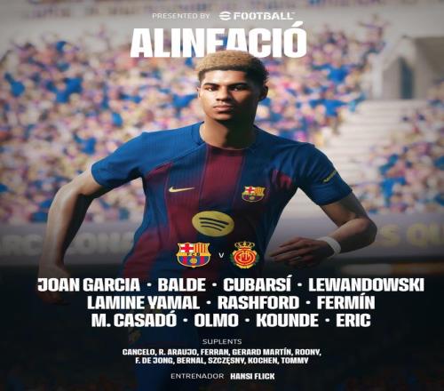 巴薩vs馬略卡:亞馬爾、萊萬、拉什福德首發,奧爾莫出戰