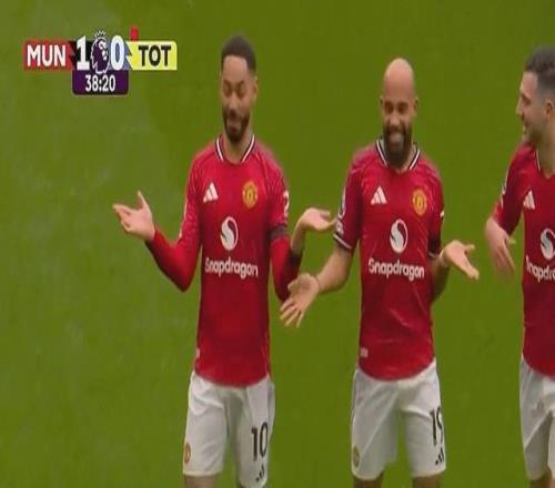 比賽第37分鐘,曼聯角球精妙配合,姆伯莫推桿破門,曼聯1-0領先熱刺!