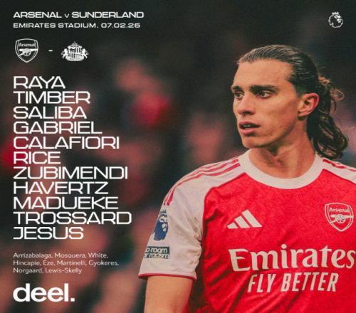 英超第25輪,阿森納主場對(duì)陣桑德蘭,賽前阿森納首發(fā)陣容出爐,具體名單如下: 阿森納首發(fā):拉亞 / 廷伯、薩利巴、加布里埃爾、卡拉菲奧里 / 賴斯、蘇維門迪、哈弗茨 / 馬杜埃凱、熱蘇斯、特羅薩爾