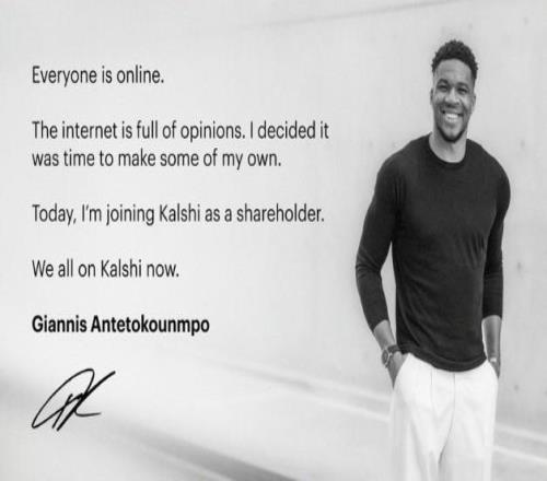 北京時間2月7日,字母哥在社媒宣布,自己將入股體育競猜平臺Kalshi Sports。