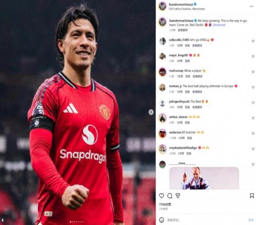 本場比賽后利桑德羅社媒曬出照片慶祝勝利,配文寫道:“我們還在成長進步,球隊走在正確的道路上,加油,紅魔!”