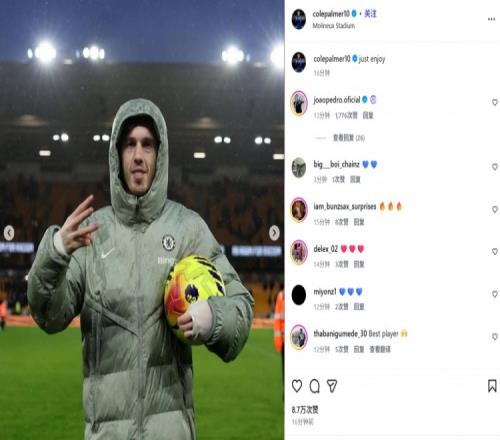 帕爾默也在賽后通過社媒曬出自己懷抱比賽用球并比出“3”手勢的照片,同時配文:“只管享受!”
