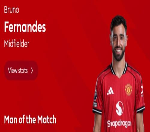 本場比賽B費破門鎖定勝局,并且還送出5次關鍵傳球,賽后他也當選英超官方球迷票選全場最佳球員。