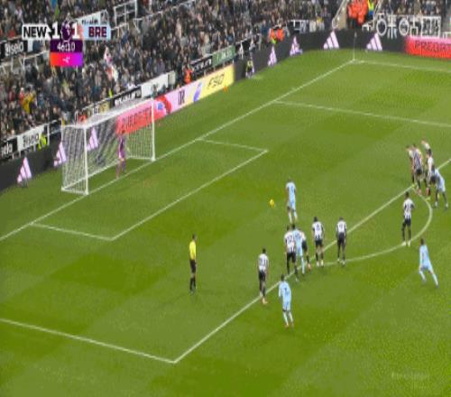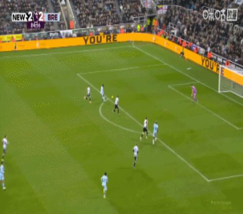 第36分鐘,瓦塔拉助攻,雅內爾特頭球頂進,紐卡1-1布倫特福德