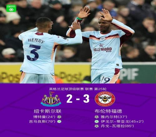 北京時間2月8日英格蘭足球頂級聯賽 聯賽 第25輪,紐卡斯爾聯主場對陣布倫特福德。紐卡斯爾聯博特曼破門,吉馬良斯破門。布倫特福德雅內爾特破門,丹戈-瓦塔拉破門,伊戈爾-蒂亞戈破門。最終比分紐卡斯爾聯 2-3 布倫特福德。