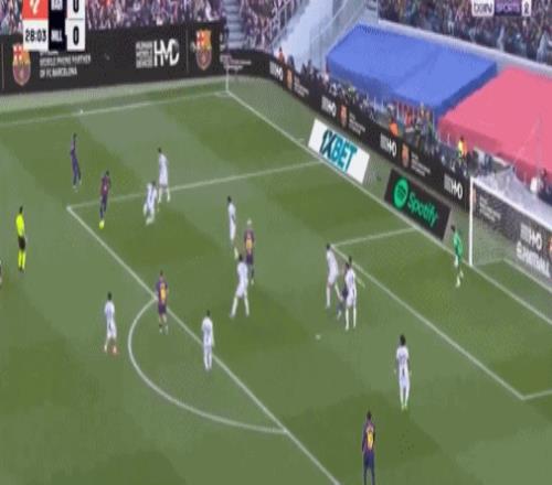 第83分鐘,費(fèi)爾明反擊當(dāng)中送出直塞,替補(bǔ)登場(chǎng)的貝爾納爾高速插上,禁區(qū)內(nèi)低射命中,巴薩鎖定勝局,3-0!據(jù)統(tǒng)計(jì),18歲的貝爾納爾打進(jìn)巴薩生涯處子球!