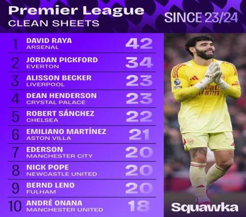 除了幾個破門實力出色的人物,在防守端加布里埃爾與薩利巴的中衛組合固若金湯,幫助球隊延續了主場聯賽不丟球的紀錄。數據統計顯示,拉亞是近3個賽季零封次數最多的英超門將。