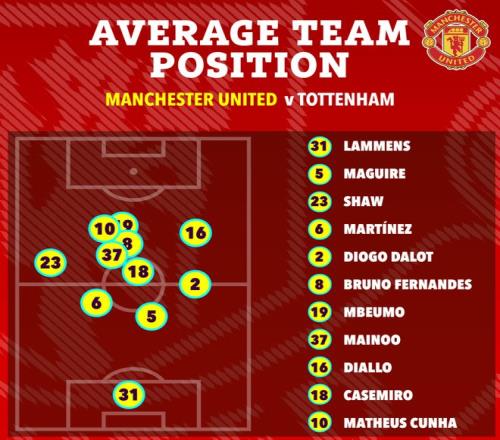 第29分鐘羅梅羅的紅牌是比賽的絕對轉折點。這次魯莽的踩踏不僅讓熱刺早早十人應戰,更徹底擊碎了他們的戰術部署。少一人后,熱刺的防守體系崩潰,末段控球率一度暴跌至28%。曼聯則抓住人數優勢,通過耐心的傳導和兩個邊路的輪番沖擊撕扯對手防線。