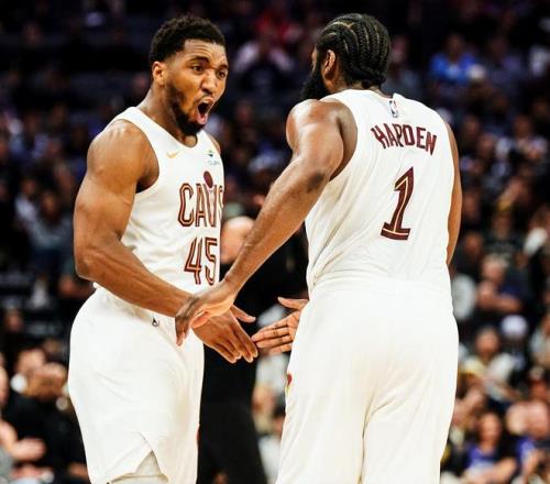 騎士隊完成大逆轉,哈登首秀低開高走,聯手米切爾主宰比賽,盡顯超巨本色。哈登出戰23分鐘,13投7中(三分球8中5),罰球4中4,貢獻23分+2籃板+8助攻+1搶斷。米切爾出戰34分鐘,24投13中(三分球8中2),罰球7中7,狂轟35分+2籃板+4助攻+2搶斷+2蓋帽。據統計,這是米切爾本賽季第13次砍下35+,僅次于東契奇(19次)、華子(15次)、亞歷山大(14次)和馬克西(14次)。尤其是末節決戰,米切爾獨砍17分,哈登獨砍15分,雙槍爆砍32分,是騎士隊扭轉乾坤的關鍵。