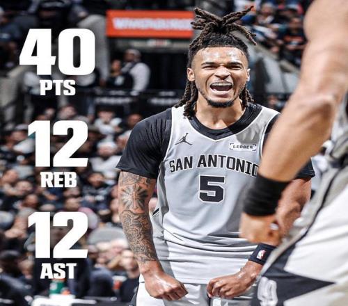 “這是他生涯至今最好的一場比賽,也是我親眼見證過的個人數(shù)據(jù)最棒的比賽之一。”馬刺球星文班亞馬稱贊自己的隊友說道。