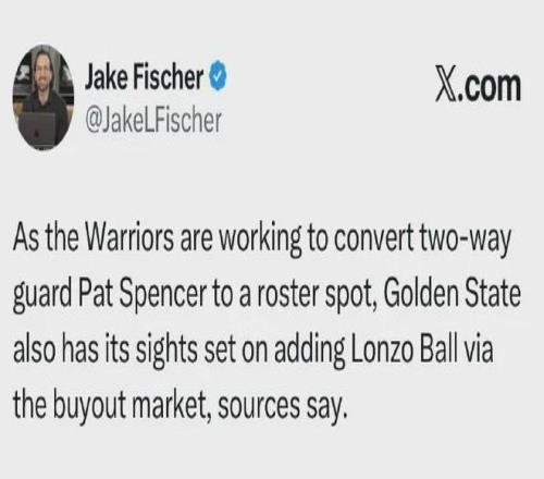 名記Fischer透露:勇士計劃在買斷市場里面簽下“球哥”朗佐-鮑爾......
