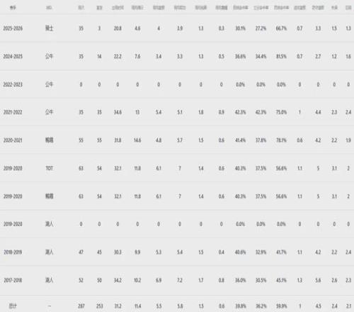 這哥們本賽季至今出戰35場比賽首發3次,場均上陣20.8分鐘,得到4.6分4板3.9助1.3斷,三項命中率30.1%、27.2%和66.7%。