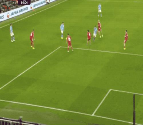 下半場開始后,場上風云突變,利物浦大舉壓上,曼城越踢越被動。第54分鐘,接到薩拉赫的傳中,?;倏祟^球頂偏,錯失良機。