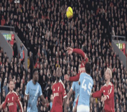 第100分鐘,利物浦全線壓上,謝爾基中圈附近傳球,索博斯洛伊看到空門立即拉拽哈蘭德,哈蘭德也還以顏色,皮球緩緩滾入球門。