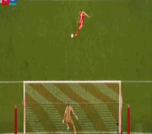 比賽的第17分鐘,迪亞斯禁區(qū)內被阿克波古馬拉倒,主裁判判罰點球并且向阿克波古馬出示紅牌。凱恩主罰點球勁射破門,1比0!