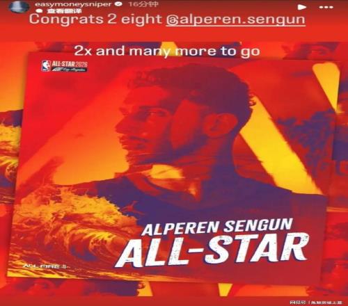 申京趕上2026年洛杉磯全明星的末班車遞補入選,這可以說讓火箭上下是一片歡騰!休斯敦火箭官方微博曬出慶祝阿爾佩倫申京入選全明星的海報,并配文:“恭喜申老師入選全明星代表國際隊參賽。
