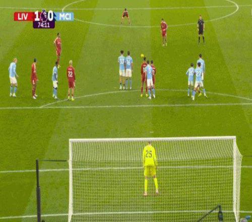 第74分鐘,利物浦前場任意球機會,面對只有兩人的曼城人墻,索博斯洛伊轟出世界波,皮球擊中右側立柱后入網,門將唐納魯馬幾乎毫無反應。利物浦1比0領先。