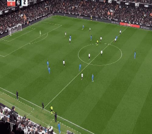 開場之后,皇馬并沒有迅速大舉壓上,瓦倫西亞還是打出了一些不錯的配合,并沒有被動防守。