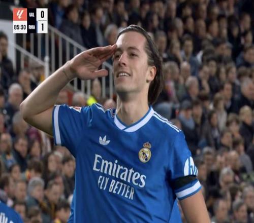 西甲第23輪,皇家馬德里客場對陣瓦倫西亞,下半場赫伊森助攻卡雷拉斯破門,這是自2022年4月以來首次有皇馬后衛在客場比賽中連線進球。