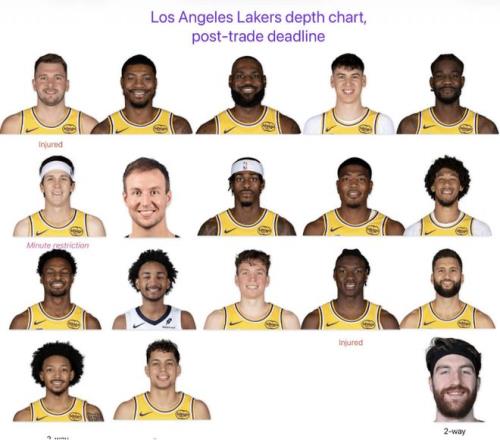 如今湖人正式簽約巴夫金,成功填滿球隊(duì)的15人陣容名單,分別是東契奇、里夫斯、詹姆斯、斯馬特、肯納德、布朗尼、克內(nèi)克特、蒂耶羅、八村壘、拉拉維亞、艾頓、范德比爾特、克勒貝爾、海斯與巴夫金。