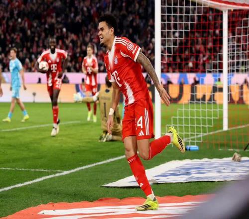 下半場完全成為迪亞斯的個人表演時間,他先是在第61分鐘接奧利塞的傳中推射得手,隨后在第88分鐘抓住對方門將失誤再入一球,完成了個人帽子戲法,此役迪亞斯獨造五球,是拜仁取勝的頭號功臣,這場勝利讓拜仁以54分、領先多特蒙德6分的優勢繼續領跑德甲積分榜。