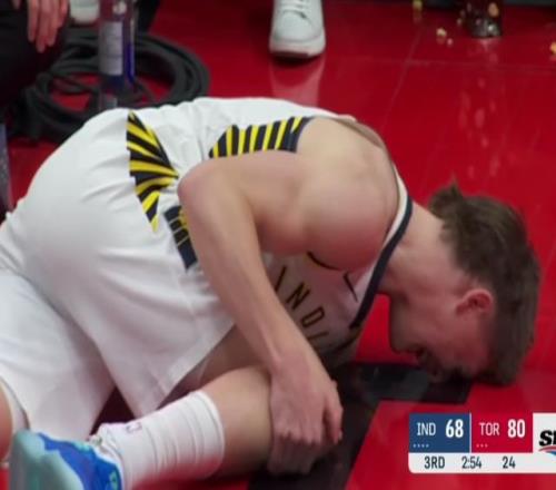 弗菲是2024年NBA選秀第35順位球員,他在客場不敵猛龍的比賽中,一次扣籃落地時姿勢失衡導致受傷。這位二年級鋒線球員當即捂住右膝,痛苦不堪,全隊都圍了過來,當時就能看出傷勢很嚴重。看到隊友遭遇重傷,已經賽季報銷的哈利伯頓表情痛苦。主帥卡萊爾也是神情沮喪。