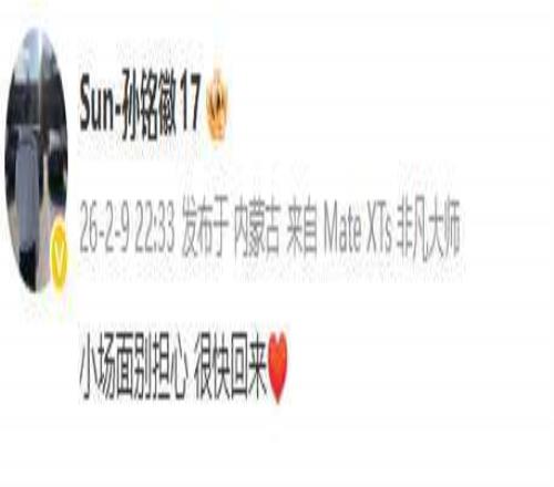 2月9日22時,傷情確診后,孫銘徽在社交媒體發(fā)布一條僅10字的動態(tài):“小場面別擔(dān)心,很快回來。”沒有抱怨,沒有煽情,沒有自憐。這條微博,被轉(zhuǎn)發(fā)超12萬次,評論區(qū)滿是“等你回來”“加油,銘徽”“浙江需要你”。