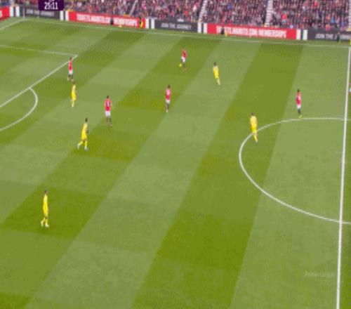 也就是我們在復盤中提到的,阿瑪德-迪亞洛斜向進入中路的這條全新線路: