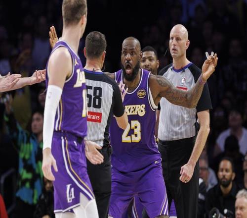 詹姆斯與裁判交流