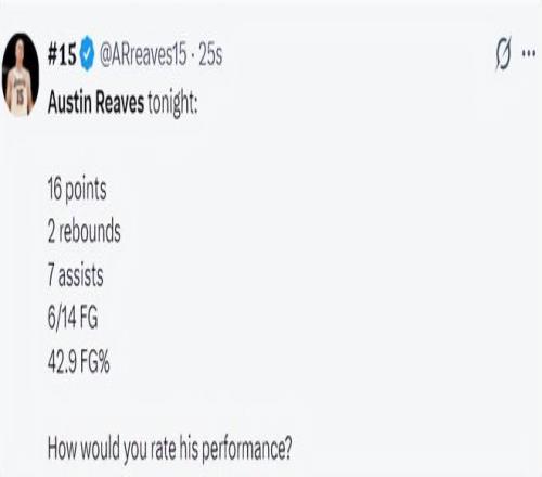 末節里夫斯登場一個失誤,隨后拋投挽尊。隨后里夫斯突破失誤,里夫斯中投打鐵,里夫斯續命三分不中,末節里夫斯只拿2分,整個下半場7中1+三分3中0只拿4分,虎頭蛇尾表現不佳。