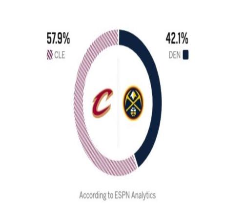 反觀掘金這邊,上一場擊敗公牛,終于止住了3連敗的頹勢,目前以34勝19負(fù)排在西部第三。約基奇復(fù)出后,球隊并未迎來理想的狀態(tài)提升,此前的連敗還讓掘金與西部前二的差距被拉開,身后火箭、湖人也不斷縮小差距。對陣公牛一役,帶傷出戰(zhàn)的穆雷砍下28分11助攻,約基奇貢獻(xiàn) 22 分14籃板17助攻的大號三雙,成為NBA歷史三雙次數(shù)第二多的球員。替補(bǔ)球員小哈達(dá)威拿下23分,掘金進(jìn)攻端火力依舊強(qiáng)勁,但防守端問題突出,過去4場比賽失分均超過120分。賽前,ESPN預(yù)測本場勝率:騎士57.9%,掘金42.1%。