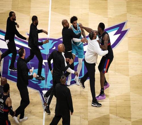 前一場擊敗老鷹,隊史首次拿下9連勝的黃蜂隊迎來與東部第一活塞隊的較量,結果兩隊不僅在場上打得難分難解,還爆發大規模沖突,一口氣4人被驅逐出場。