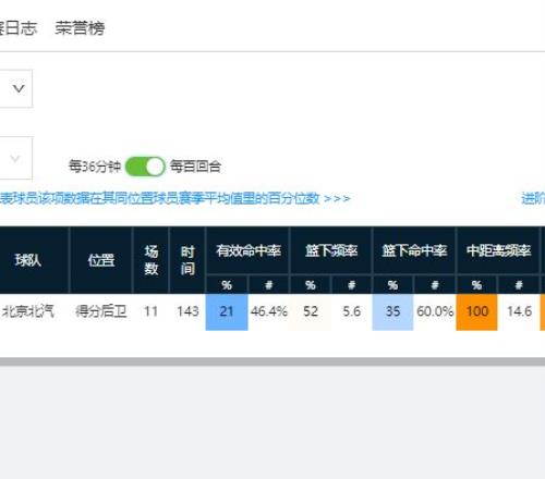 第一階段過后,鮑威爾場均三分能出手7.4次,三分頻率高居聯盟同位置第一,但他的三分命中率只有28.4%,該數據僅超過聯盟同位置23%的球員,甚至不如隊友于德豪。