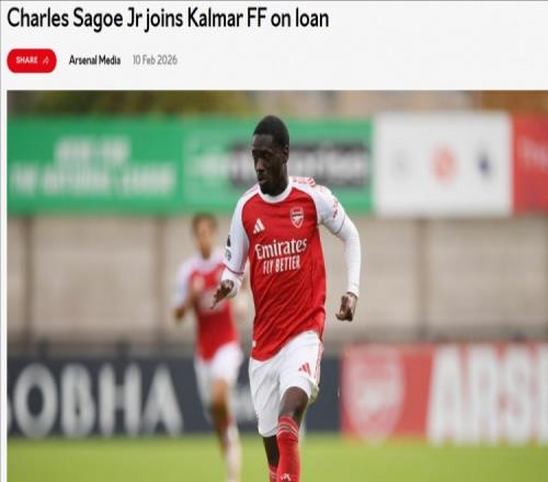 體育播報2月11日宣 阿森納官方宣布,外租21歲小將查爾斯·薩戈到瑞典球隊卡爾馬,租期至2027年1月。