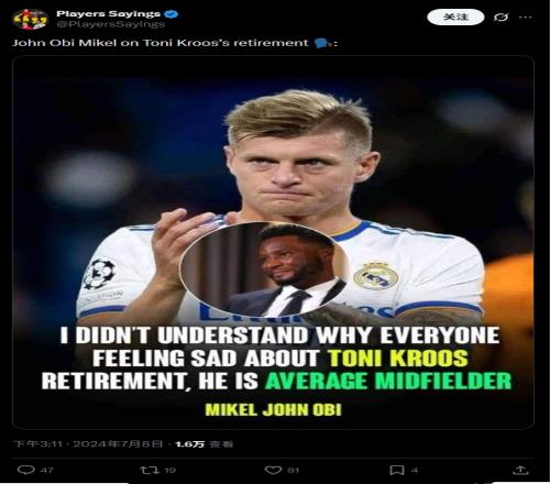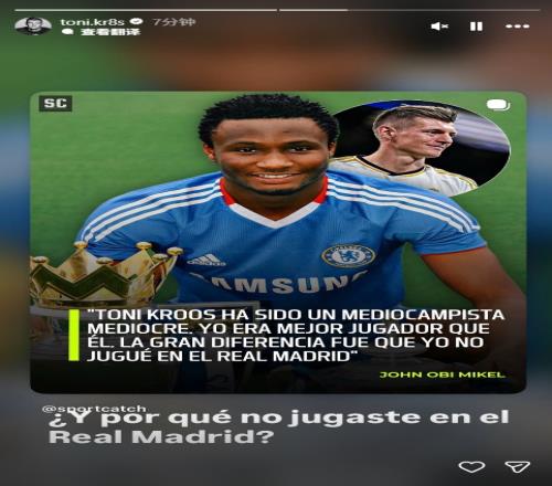體育播報02月10日宣 今日克羅斯在社媒上轉載了前切爾西中場米克爾的一段言論,不過經查證,米克爾并沒有說過類似的話。