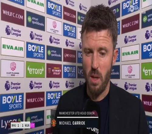 率隊在英超第26輪1-1絕平西漢姆聯(lián)后,曼聯(lián)主帥邁克爾-卡里克接受了TNT體育的采訪。