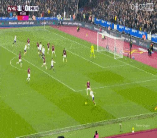第49分鐘,鮑文傳中橫掃門前,紹切克近距離搶點破門,西漢姆聯1-0曼聯。