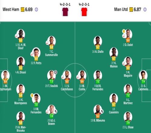 西漢姆聯首發:1-赫爾曼森、15-馬夫羅帕諾斯、29-萬-比薩卡、4-迪薩西、12-迪烏夫(79'27-馬加薩)、18-馬特烏斯、28-紹切克、32-波茨(79'30-斯卡爾斯)、7-薩默維爾(89'2-沃克-彼得斯)、20-鮑文(89'17-阿達瑪·特勞雷)、11-卡斯特拉諾斯(69'9-卡勒姆·威爾遜)