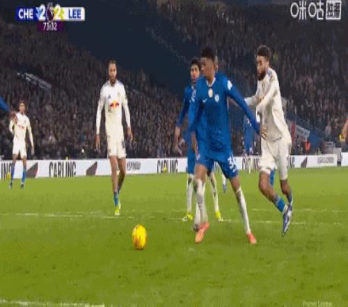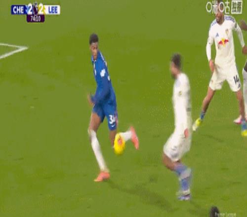 第73分鐘,切爾西禁區混戰,奧卡福爾推射破門,利茲聯2-2扳平