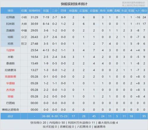 杜蘭特22中8得26分6板3斷5失誤,申京14中9拿到22分7板5助3失誤,謝潑德10中6拿到16分6板4助4失誤。倫納德19中7得24分8板3助1斷,連續(xù)32場砍下20+。馬瑟林13中4拿到9分7板4助3斷,手感一般,但是在場上活力十足。