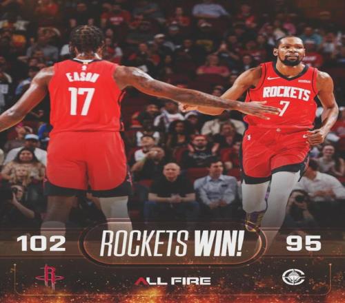 第四節(jié)開始,謝潑德組織進攻,芬尼-史密斯鐵樹開花,火箭一波7-0拉開到兩位數(shù)??齑M攻斷電,最后1分50秒謝潑德底角三分殺死比賽。全場結(jié)束,火箭102-95擊敗快船。明天上午9點,兩隊背靠背再打一場,依然是火箭主場。