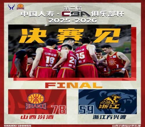 北京時間2026年2月9日19:30,第二屆中國人壽·CBA俱樂部杯半決賽繼續進行,山西汾酒在內蒙古體育館,迎戰浙江方興渡。本場比賽,山西隊準備充分,籃板球拼搶積極,進攻也比較耐心,最終順利取勝,但全隊需擺正心態。正如潘江指導賽后所說,大家一定要保持清醒,對手大部分主力缺陣,需要繼續認真總結,準備接下來的決賽。最終全場比賽結束,山西汾酒78:59戰勝浙江方興渡。