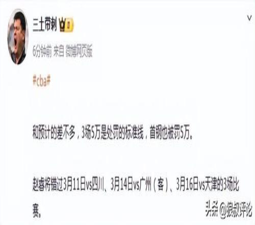 北京時間2月11日,CBA官方公示,北京男籃球員趙睿不當言論罰單,他將會被禁賽3場,罰款5萬,而北京男籃則是核減經費5萬。