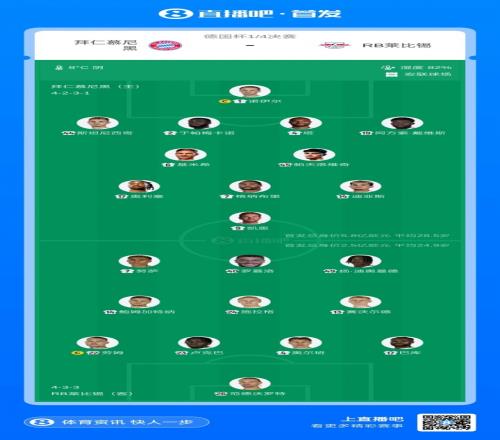 體育播報2月12日宣 德國杯8強對決,拜仁對陣萊比錫比賽即將打響。賽前首發(fā)出爐。