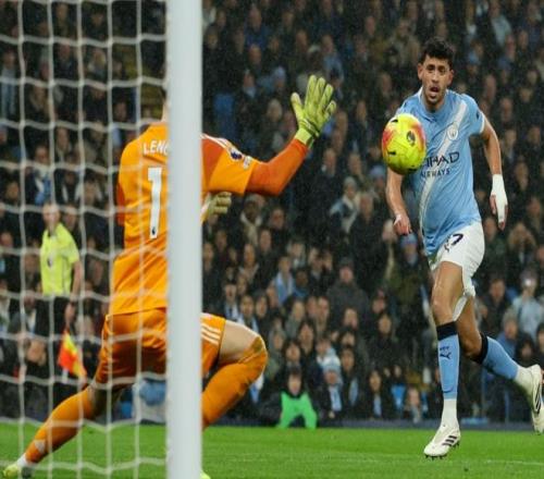 第29分鐘,威爾遜在禁區內的一腳低射被撲了出去。第30分鐘,曼城再次進球。奧賴利在禁區左側小角度射門打進,送出助攻的是塞門約。9分鐘后,曼城又進球了!福登把球分給禁區前沿的哈蘭德,哈蘭德停球后起腳低射,皮球鉆入球門右下角。曼城真是踢瘋了。第41分鐘,勞爾-希門尼斯單刀面對門將,但他的射門踢偏了。半場結束,曼城3-0領先富勒姆。