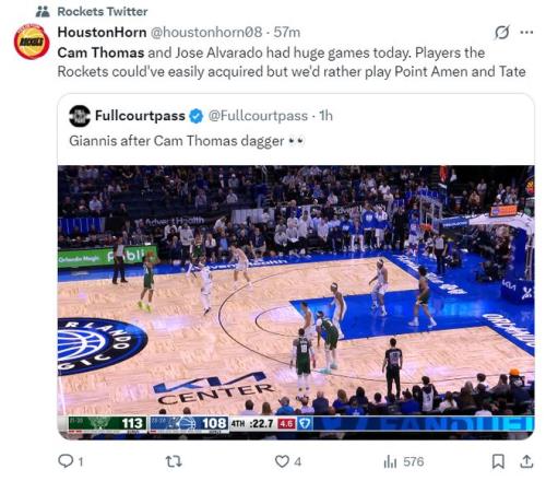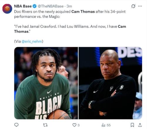 休媒賽后轉(zhuǎn)發(fā)了托馬斯超遠(yuǎn)三分的瞬間寫道:原本我們有機會簽下托馬斯這樣的得分手,但烏度卡更愿意使用阿門、泰特這樣的防守者都不愿意簽得分手。
